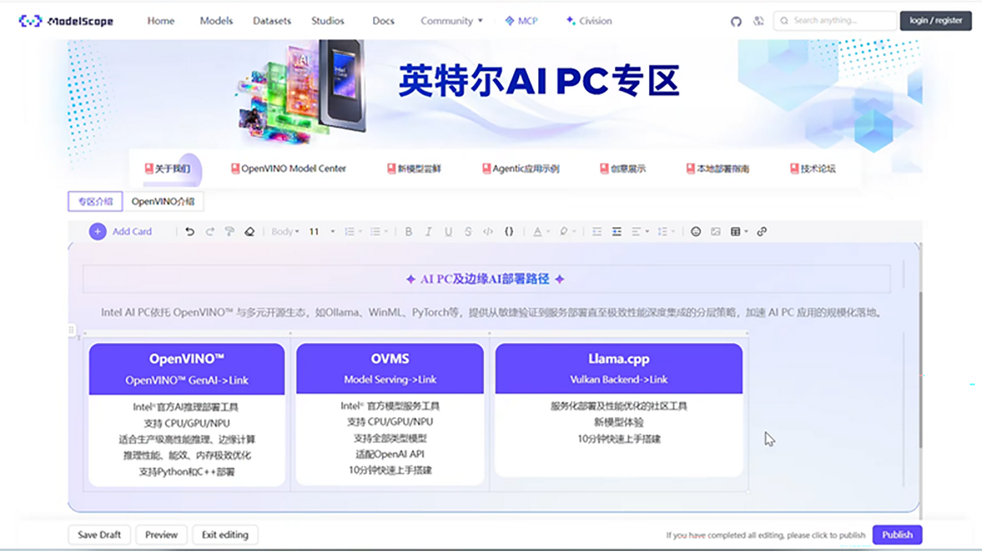 生态共创:魔搭社区英特尔AI PC专区即将上线